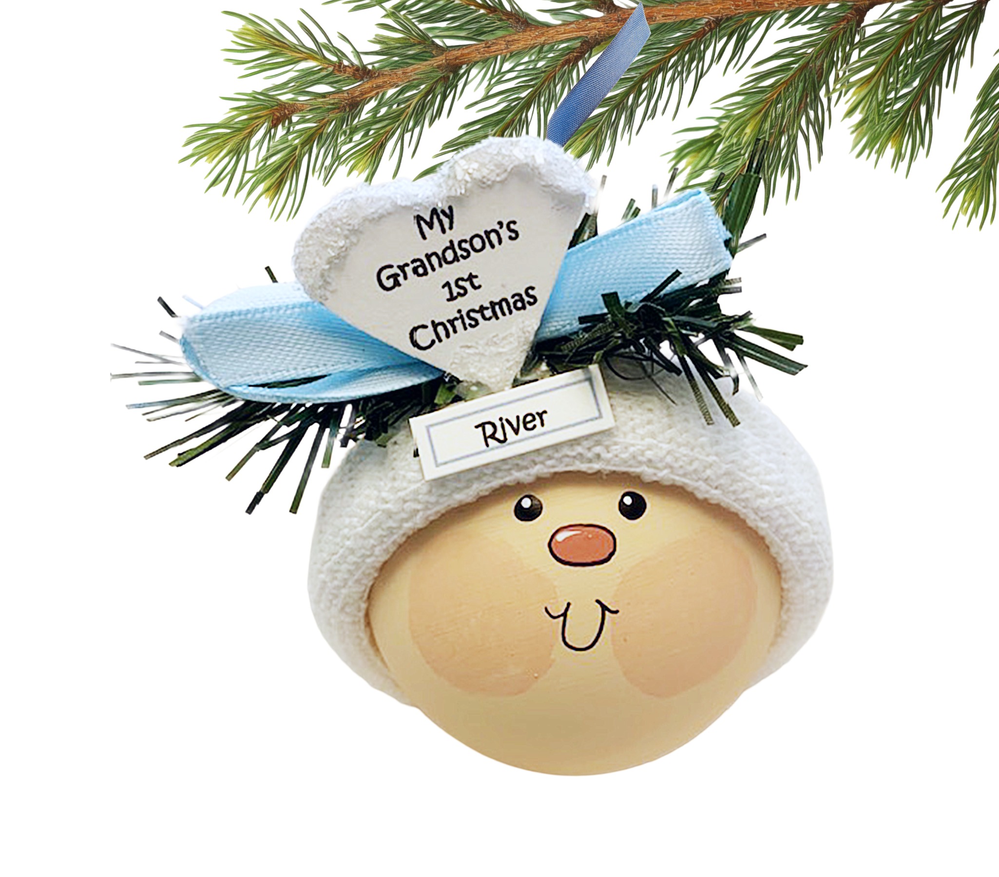 My Grandson’s 1st First Christmas Ornaments White Heart Townsend Custom Gifts BABY FACE CA44 SAMPLE