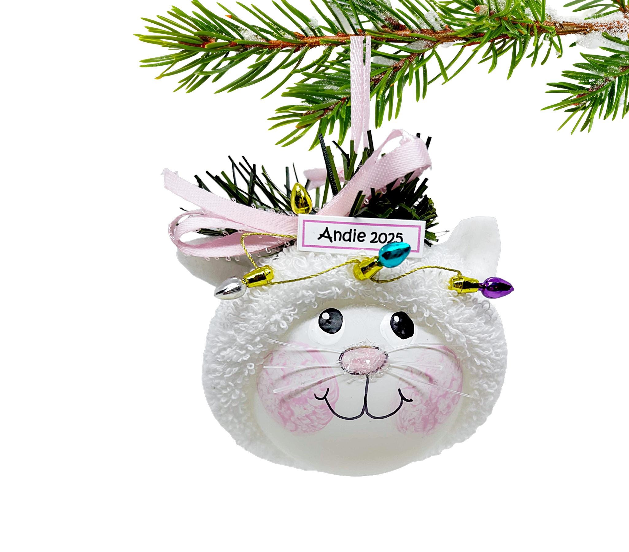 • Personalized White Cat Christmas Ornament • Custom Hand Painted Pet Ornament