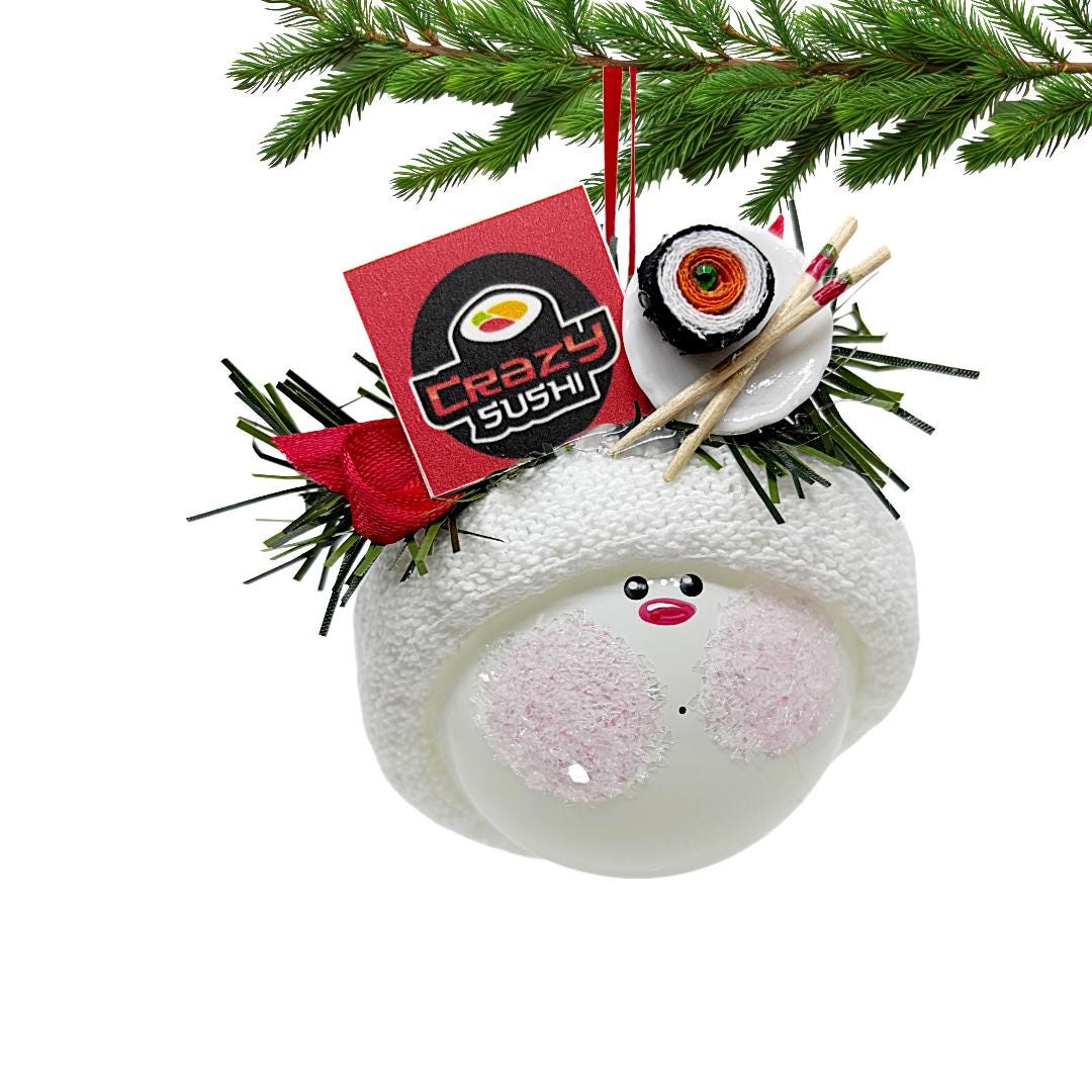 • Foodie Christmas Ornament – Hand Painted Sushi Roll with Chopsticks