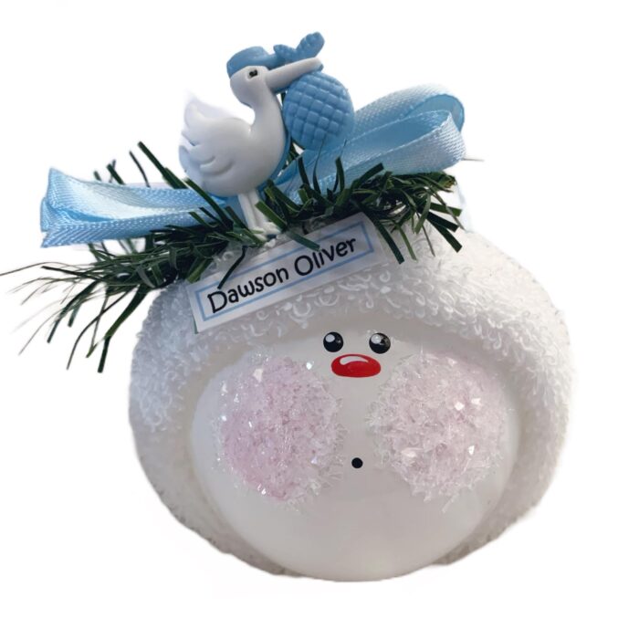 Birth Announcement Gift Christmas Ornaments Blue Stork Personalized by Townsend Custom Gifts SAMPLE W193 71